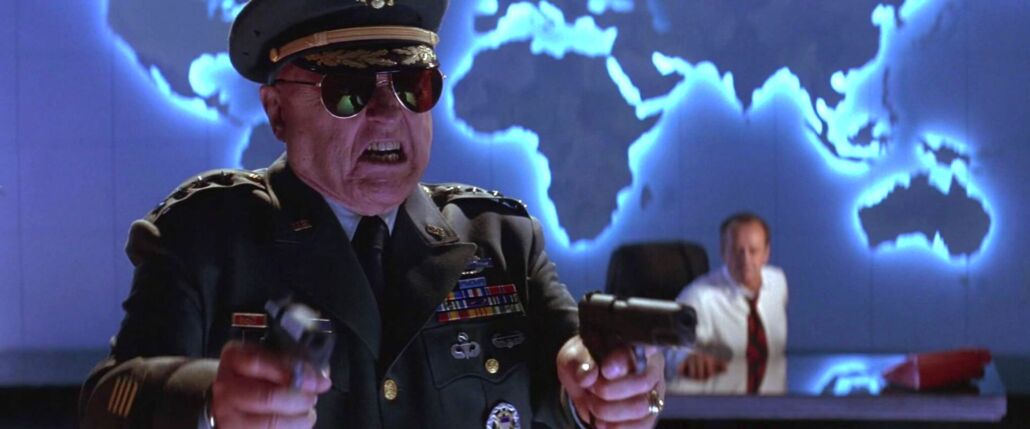Arriva un messaggio presidenziale diretto al Capo dei Capi tra i Marziani: Incontriamoci ancora una volta e proviamo a stabilire dei negoziati diplomatici, quel che è stato è stato, ora cerchiamo la pace! Al che gli alieni se la ridono spassosamente. Dicono che va bene incontrarsi, che sono dispiaciuti e mortificati. Che vogliono rimediare. Che bello!, esultano il Presidente e il suo entourage, al contrario del Generale Decker interpretato dal grande ROD STEIGER, il solo che fin dall’inizio era dell’idea di armarsi e, nel caso, attaccare subito e senza pietà. Forse un po’ troppo bellicoso, ma col senno del poi magari così in torto non era. Risultato di un ulteriore incontro? I Marziani ancora una volta fanno lo scherzone, trucidano persone a destra e a manca, e spargono panico e terrore. Ci prendono anzi così tanto gusto che decidono di farlo su larga scala!