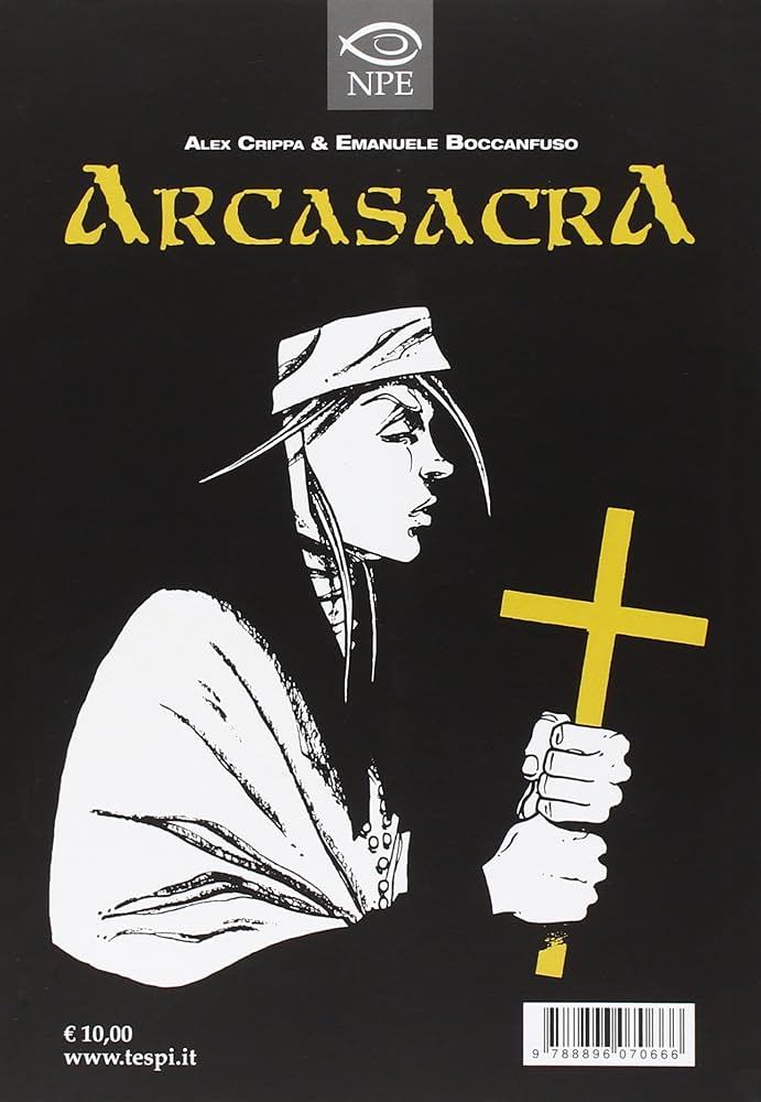 Arcasacra si presenta, fin dalla copertina (o copertine), in tutta la sua peculiarità: una doppia immagine, due donne diverse ma simili, disegnate una sul fronte e una sul retro, ad anticipare la duplice natura della graphic novel. Arcasacra è la storia di due donne, della loro sofferenza e della loro rivolta e di come entrambe si siano aiutate a vicenda, sapendolo e non. La graphic novel di Alex Crippa ed Emanuele Boccanfuso comprende, però, punti di trama spinosi e tratta argomenti come la violenza sessuale e la mutilazione e perciò è consigliata discrezione nella lettura.
