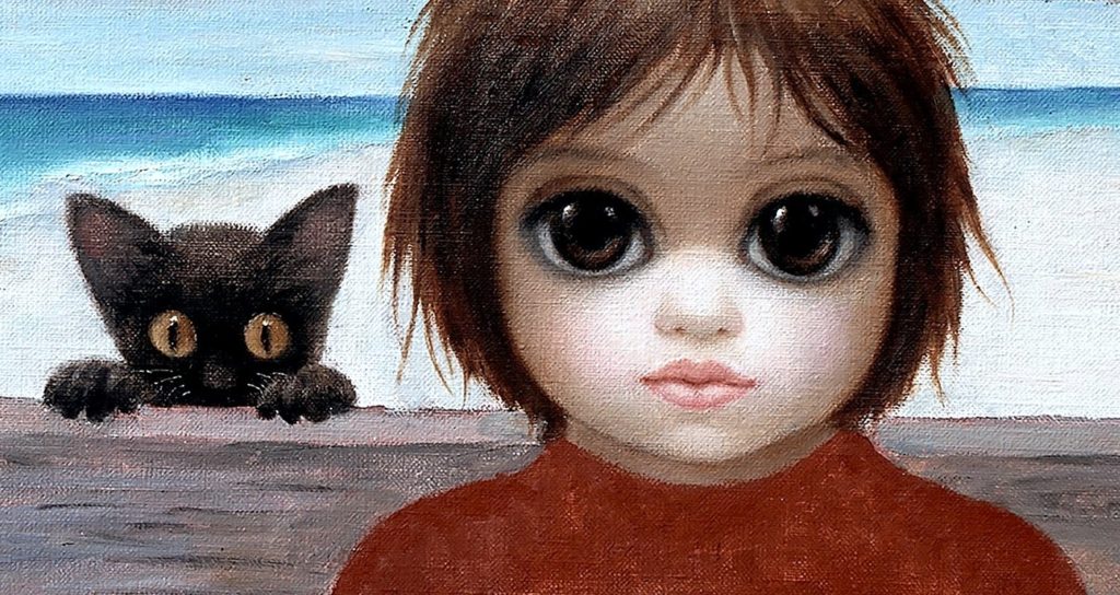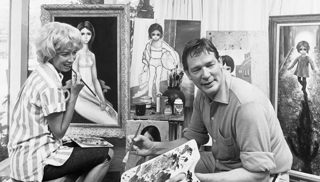 La storia raccontata è quella della pittrice MARGARET KEANE, che negli anni ’50 e ’60 conquistò e affascinò il mondo attraverso la sua Arte, in particolare per mezzo di figure femminili dotate di occhi giganteschi che lei era solita ritrarre. Peccato che nessuno pensava fosse lei l’autrice. Tutti quanti erano convinti che l’artista fosse in realtà il di lei marito, WALTER KEANE, che si prese per anni e anni i meriti che sarebbero spettati alla consorte.