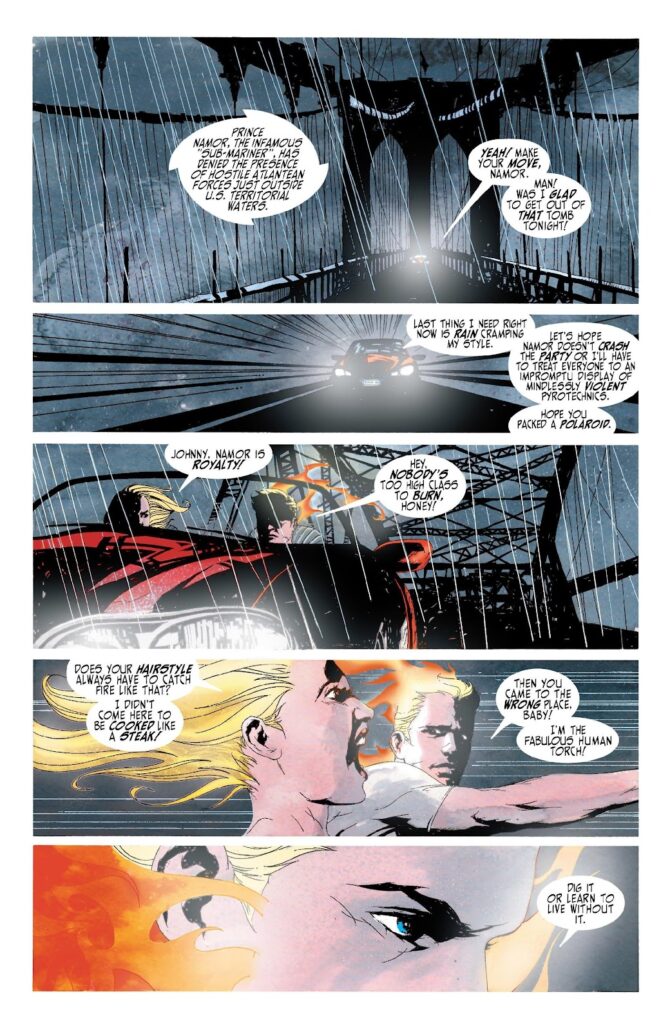 Numero #3: Seguiamo la storia di Johnny Storm, la Torcia Umana, giovane fumantino, incandescente anzi, pieno di impeto e di voglia di mostrarsi. Eppure, la sua stessa famiglia lo ignora, cosa che lui prende come se fosse una reprimenda nei suoi confronti. Come si batte una persona che valuta l’ostentazione carismatica e le apparenze grandiose come uniche costanti della propria vita? Con la stessa moneta: Destino manda un kaiju contro Johnny, che viene facilmente sconfitto. Ancora uno. Eppure, la Torcia rimane accesa e Sue cerca di resistere alle avances di Namor e Ben si riprende per andare da Reed per tornare com’era prima. Johnny, Sue e Namor vanno dall’Uomo Talpa, il padrone del kaiju, e tutti insieme capiscono di essere stati manipolati da Destino, che ora vuole invadere New York con un Doombot gigantesco, la sua arma contro Reed.