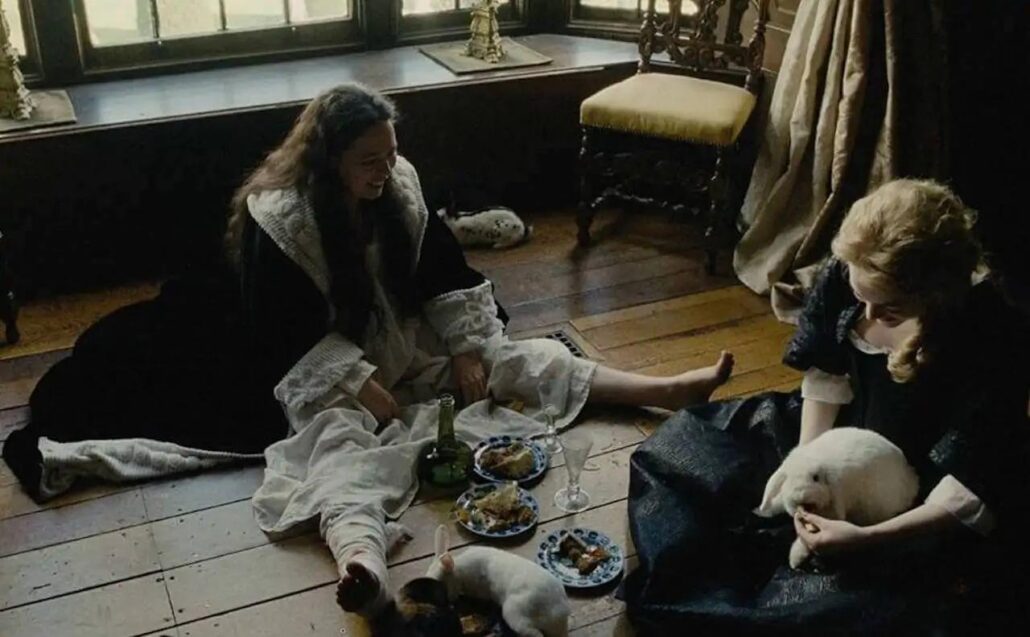 Seriamente, chi può amare una persona come questa Regina qua? È semplicemente MAESTOSA l’attrice OLIVIA COLMAN nel dare corpo e anima ad una Maestà che di maestoso non ha proprio nulla!!! La sua Anna sbava, cade per terra, urla, piange, grida, strilla, strepita, grugnisce, mangia una torta intera e poi la vomita mentre nel frattempo continua a divorarla, alterna momenti in cui starnazza peggio di una cornacchia gracchiante ad altri in cui sta zitta con un’espressione vacua in viso e un paio di tristissimi occhi vuoti e spenti eppure ricolmi di dolore. Aggredisce paggetti che non le hanno fatto nulla né possono farle alcunché. Ha improvvisi e funesti attacchi d’ira apparentemente insensati, talvolta ridacchia come una bimba capricciosa e talvolta singhiozza accasciata sul pavimento mentre si ritorce come un vermiciattolo strisciante nella sua lurida sozzeria. È davvero possibile amare una persona così? Io questo non lo so, so solo che però si ritrova ad avere due donne bestiali che tentano d’annientarsi a vicenda pur di entrarle nel cuore… e nel letto. Sì, ma non lo fanno perché Anna è Anna. Lo fanno perché Anna è la Regina.