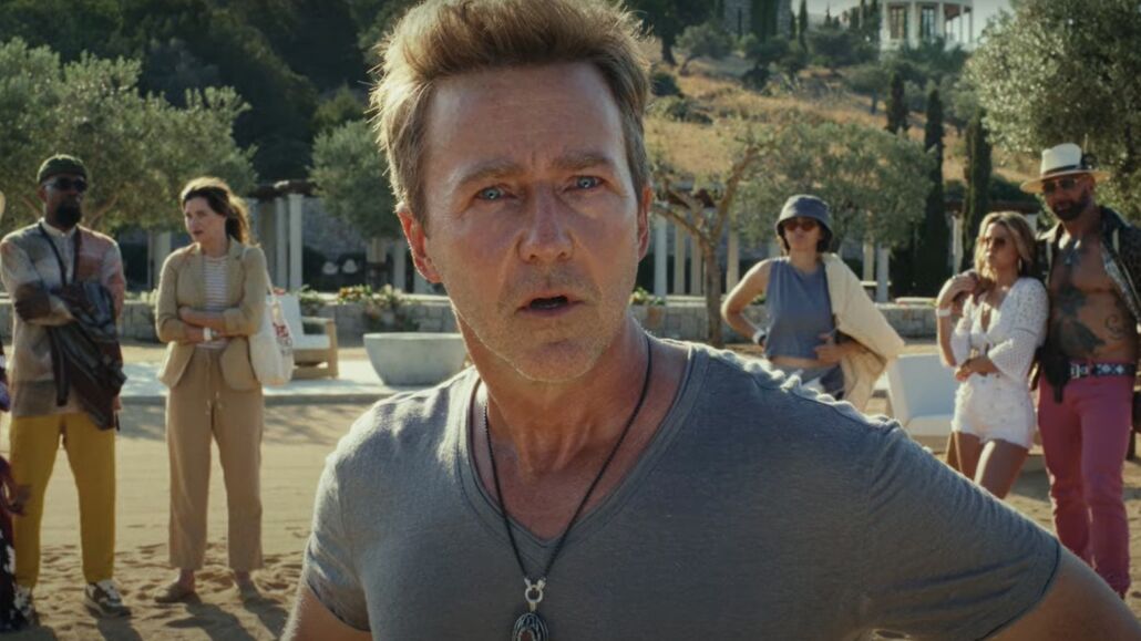 Anche il seguito, questo GLASS ONION, e cioè CIPOLLA DI VETRO, è effettivamente geniale, al netto di alcuni difetti. Oltre che per tutte le ragioni sopraelencate per cui meriterebbe di essere visto, questo film va celebrato per un motivo molto preciso che va evidenziato da subito: un monumentale EDWARD NORTON! Eccezion fatta per Benoît Blanc/Daniel Craig, troviamo altri personaggi, un altro caso e un’altra storia. Lo stile però è quello e la voglia di sovvertire il Giallo è la stessa. Il cast di questo secondo capitolo è perfettamente indovinato come è stato per il precedente, ma parte essenziale della grandezza di tal pellicola risiede in quel GENIO BRILLANTE D’ATTORE che è Norton. Scuotiamo la testa con indicibile sdegno all’idea vergognosa che non abbia ancora mai vinto un Premio Oscar nella sua onoratissima carriera! Il personaggio del nostro amico Edward, alias Miles Bron, è l’anima del caso al centro di questa nuova indagine e, sia per come è stato interpretato sia per come è stato scritto, domina incontrastato. Anche qui v’è la critica sociale, quella secondo la quale la società spesso si lascia sedurre da pittoresche figure ambigue sbucate dal nulla e che, pur non avendo particolari doti, hanno però il talento di saper incantare e ammaliare dalla loro… e tutto è magnifico… fino a quando non ne diventi dipendente e non ti ritrovi in una posizione per la quale non puoi più farne a meno, di tali personaggi.