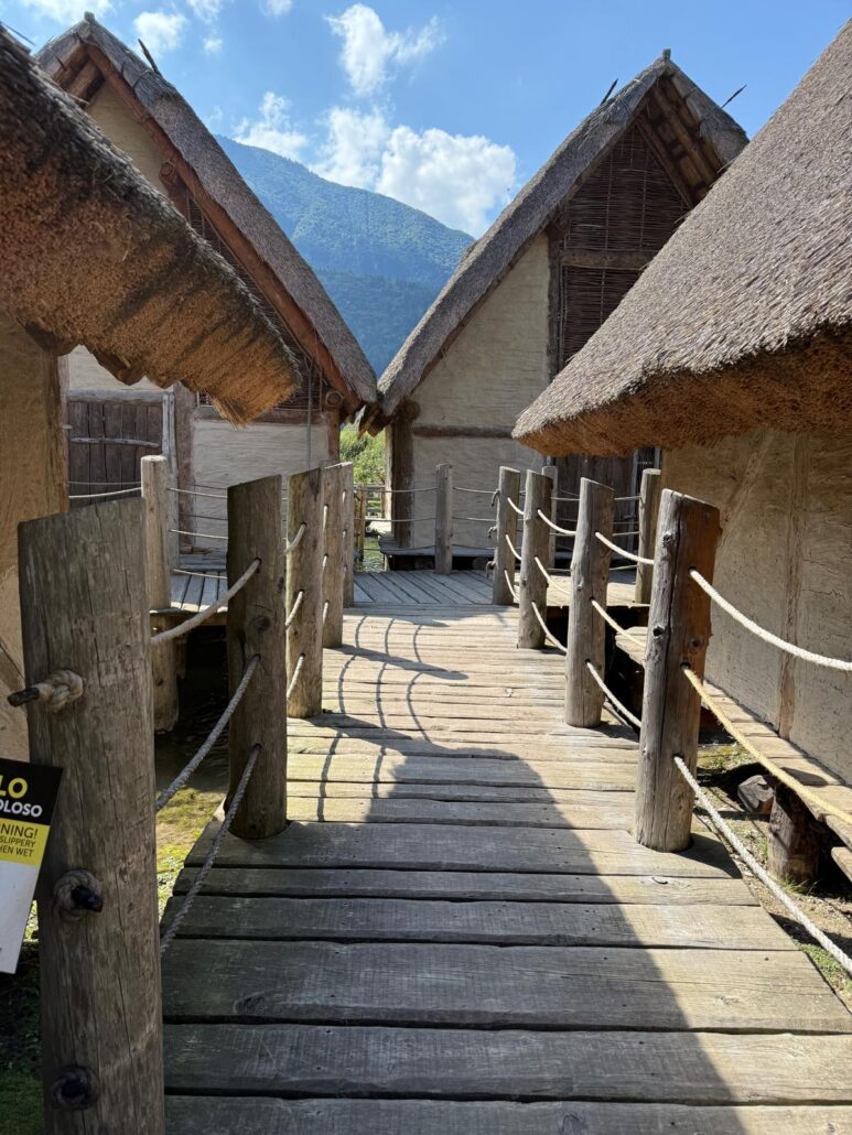 Entro quel luogo – millenni prima di Noi che ci andiamo in visita – c’eravamo Noi, che costruivamo villaggi interi sospesi sull’acqua. Esatto, sto parlando delle palafitte! Costruzioni d’un ingegno e una perizia talmente incredibili che oggigiorno ci appaiono impossibili, guardando alla tecnologia dell’epoca. E ricordo che la tecnologia dell’epoca erano paglia e legno. Stiamo parlando della preistoria: niente calcestruzzo armato o geometri professionisti, ma pali di legno poggiati gli uni sugli altri, alla stregua di pezzi di lego (ma un filo più grandi!) che dovevano andare a incastrarsi, sorretti a loro volta da altri pali inseriti nel fondo di fiumi, paludi, laghi e lagune. Il fatto è che quello non era un gioco, non era come nei lego: quella era vita umana, le persone affidavano a quei pali le loro dimore, i loro cari, le loro stesse esistenze, abitando sopra semplici pali di legno ma che nelle mani dell’uomo potevano diventare case! E lo diventavano. A Fiavé ho imparato che non si conosce bene la ragione per cui le palafitte sono nate (per poter abbeverare meglio gli animali? come baluardo da attacchi nemici? per comodità in merito a discorsi puramente agricoli? le ipotesi sono tante, ma per ognuna esistono sia pro sia contro) ma si sa che hanno dato forma alla vita di chi ci abitava, che hanno dato origine a costumi e usi e tradizioni, che si sono evolute insieme ai loro creatori nel mentre che espandevano i loro villaggi e scoprivano nuove tecniche di costruzione. Mi rimarranno sempre nel cuore quei panorami mozzafiato, quei reperti archeologici messi lì a imperitura memoria di quello che siamo stati e che abbiamo fatto e che però sanno raccontare tanto anche sul nostro presente, quelle preziose lezioni che mi hanno dato sulla capacità straordinaria tutta umana di creare, innovarsi e realizzare. Ma la lezione più importante di tutte fu la seguente: